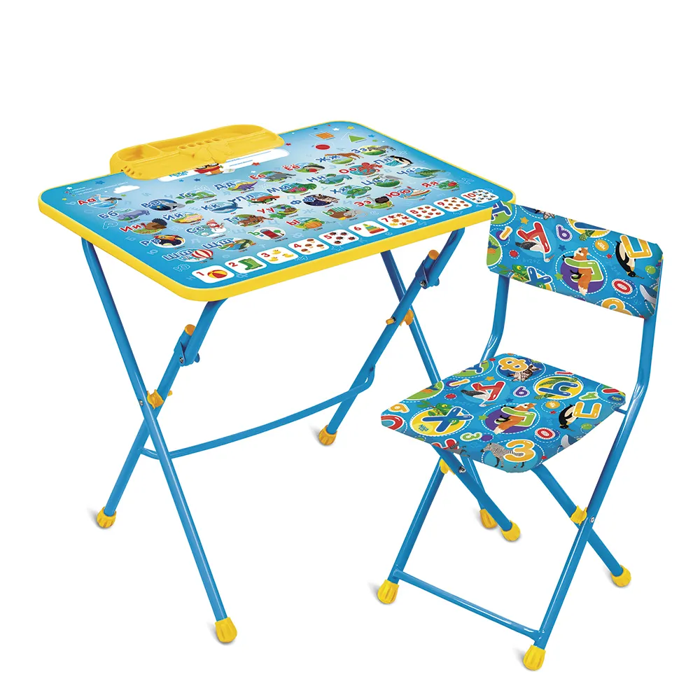 Складной комплект детской мебели создан специально для малышей от 3 до 7 лет. Изготовлен из стального каркаса. В комплект входит стол и стул с мягким сиденьем, у которых имеются подставки для ног. Столешница сделана из пластика и облицована пленкой с рисунком "Азбука", который поможет ребенку выучить и освоить буквы. Комплект детской мебели / Набор детской мебели / детский стол и стул / столик / Набор стол стул / Парта