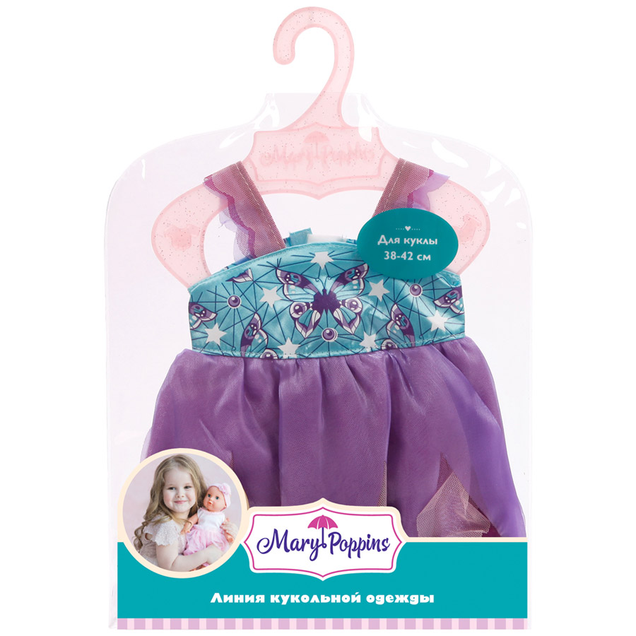 Очаровательное платье «Бабочка» от торговой марки Mary Poppins предназначено для кукол ростом 38-45 см. Наряд дополнит нежный и воздушный образ любимой куколки, делая его ещё более прекрасным! На верхней части платьица изображена милая бабочка, а нижняя его часть очень похожа на цветочные лепестки.