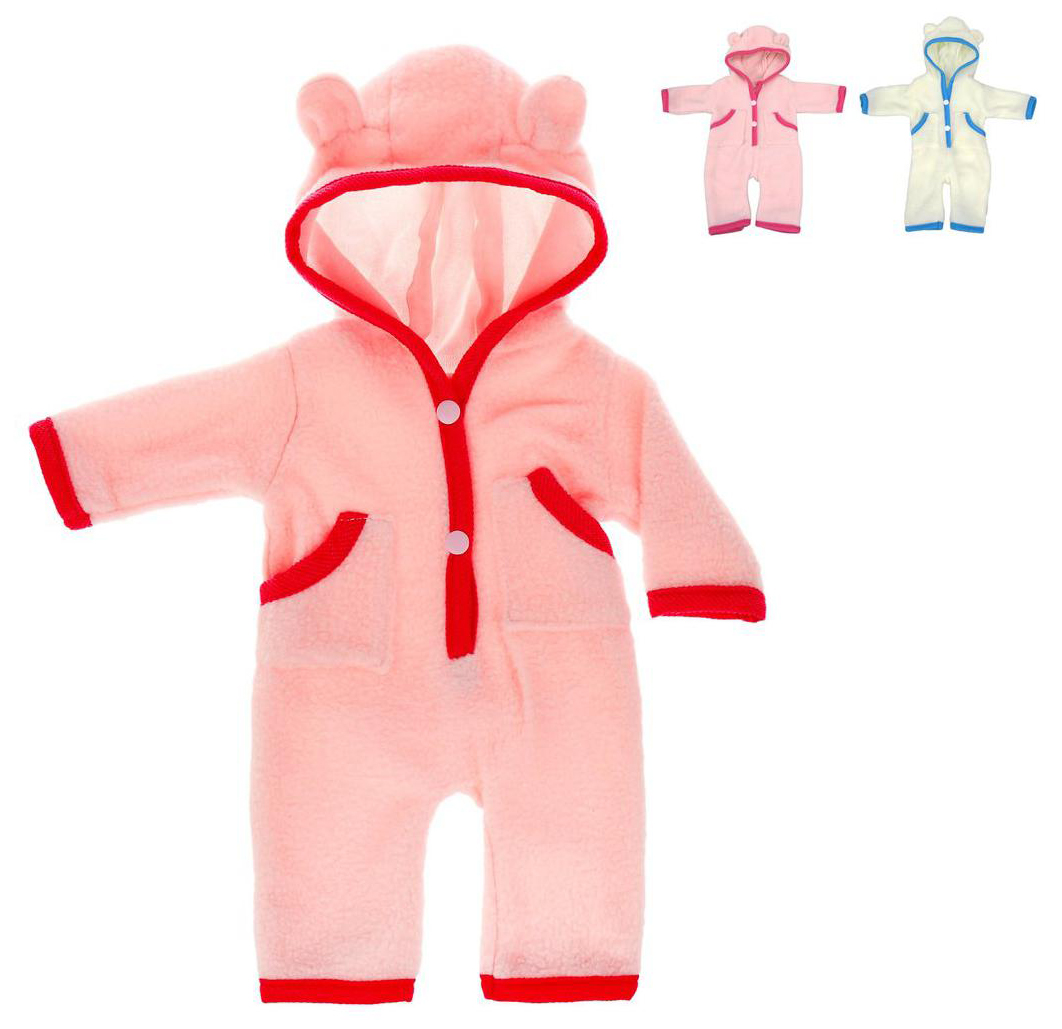 Куклы тоже любят наряжаться! Прелестный комбинезон с капюшоном прекрасно подойдет для куклы высотой 39-45 см. Комбинезон застегивается спереди на пуговки. Спереди имеются кармашки. Цветовые варианты представлены в ассортименте (розовый и белый с голубыми вставками).