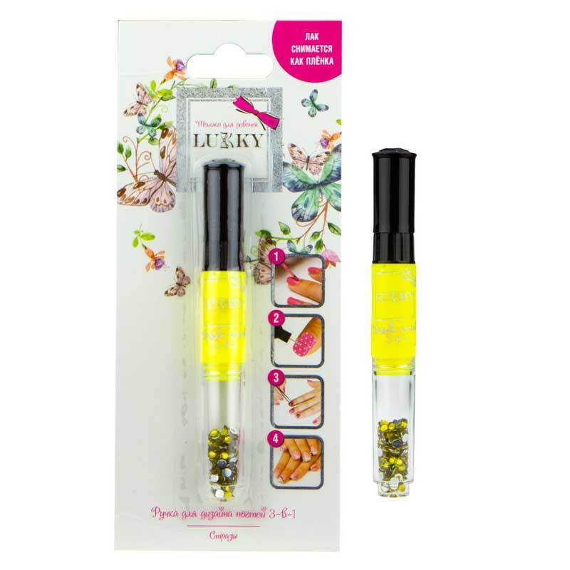 Возврат 1toy Т16779 Lukky 3-в-1 ручка для дизайна ногтей с лаком д.ногтей 6 мл жёлтый 117 и стразами 1,5 г, надлежащего качества