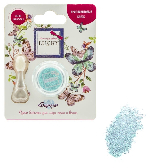 Возврат 1toy Т18899 Lukky клейкие блёстки для лица и тела сухие,спрессованные,цвет "Бирюза", 4 г,с аппликато надлежащего качества