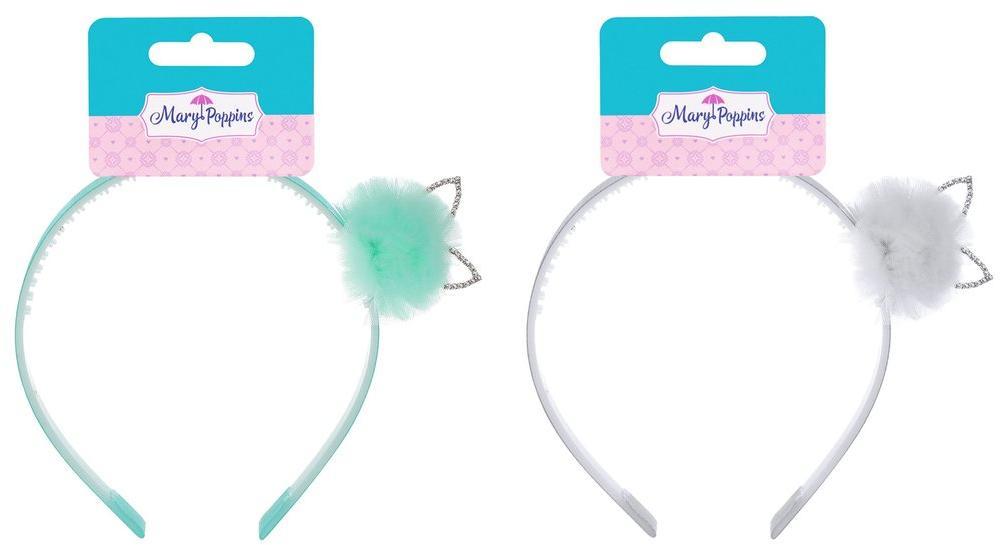 Ободок украшен воздушным помпоном из фатина и ушками со сверкающими стразами. Цветовые варианты представлены в ассортименте.