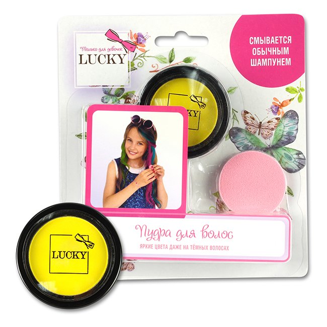 Возврат бракованного Lucky 1toy Т11920 пудра для волос, в наборе со спонжем, цвет: желтый, на блистере