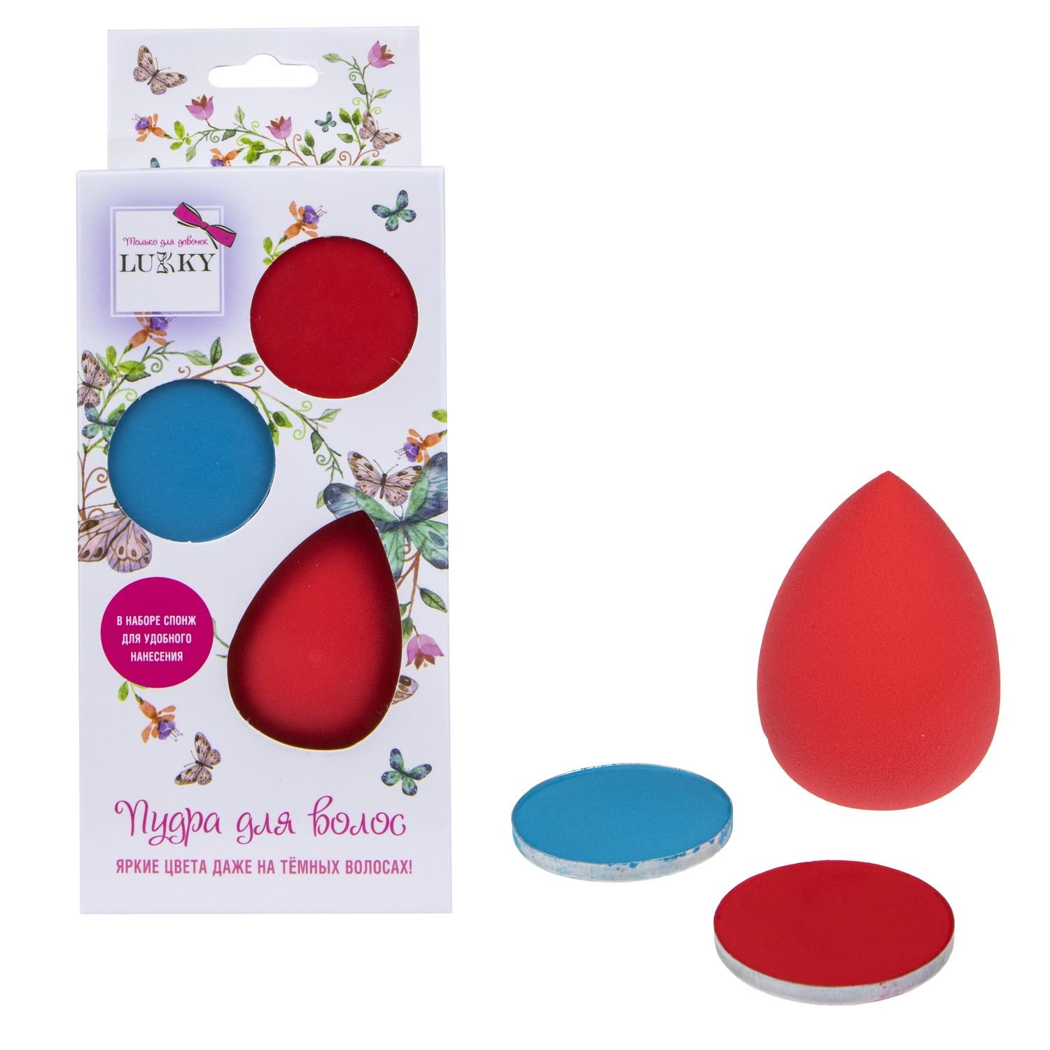 Возврат бракованного Lukky Т16154 набор с пудрой для волос, 2 цв.:красный и бирюзовый, 3,5 г каждая,