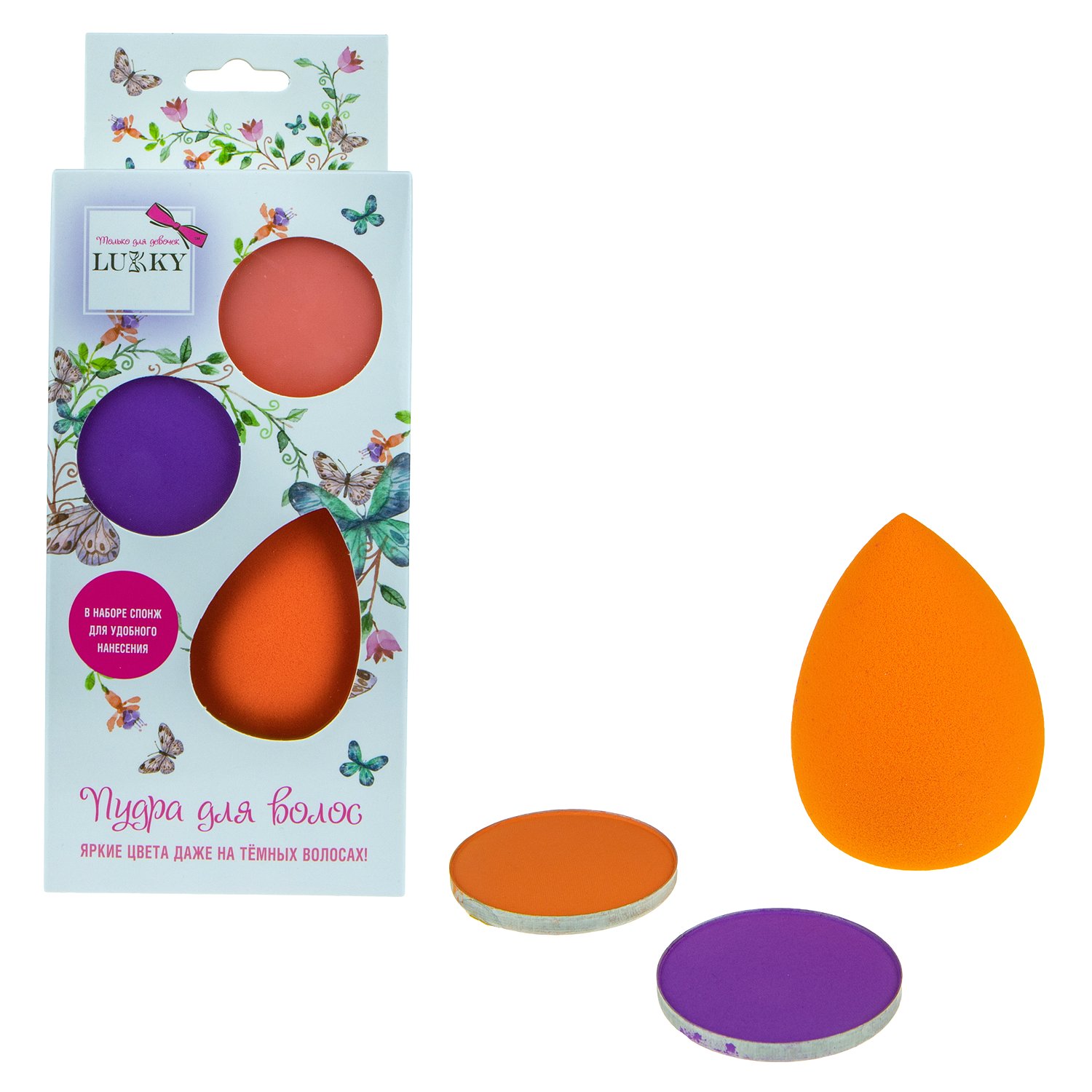 Возврат бракованного Lukky Т16155 набор с пудрой для волос, 2 цв.: оранжевый и фиолетовый, 3,5 г каждая, с каплевидн
