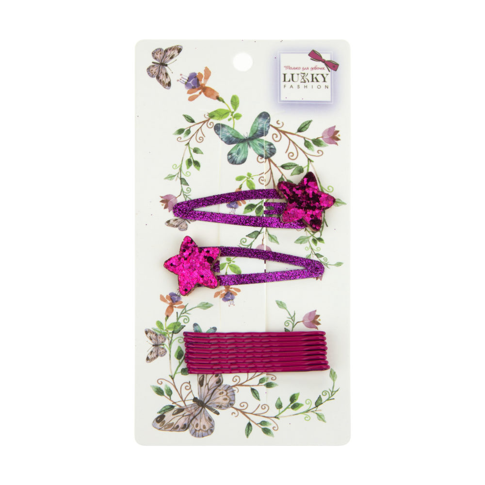 Набор заколок для волос от LUKKY FASHION. В наборе 2 заколки клик-клак с блестящими звездочками и 8 заколок-невидимок.