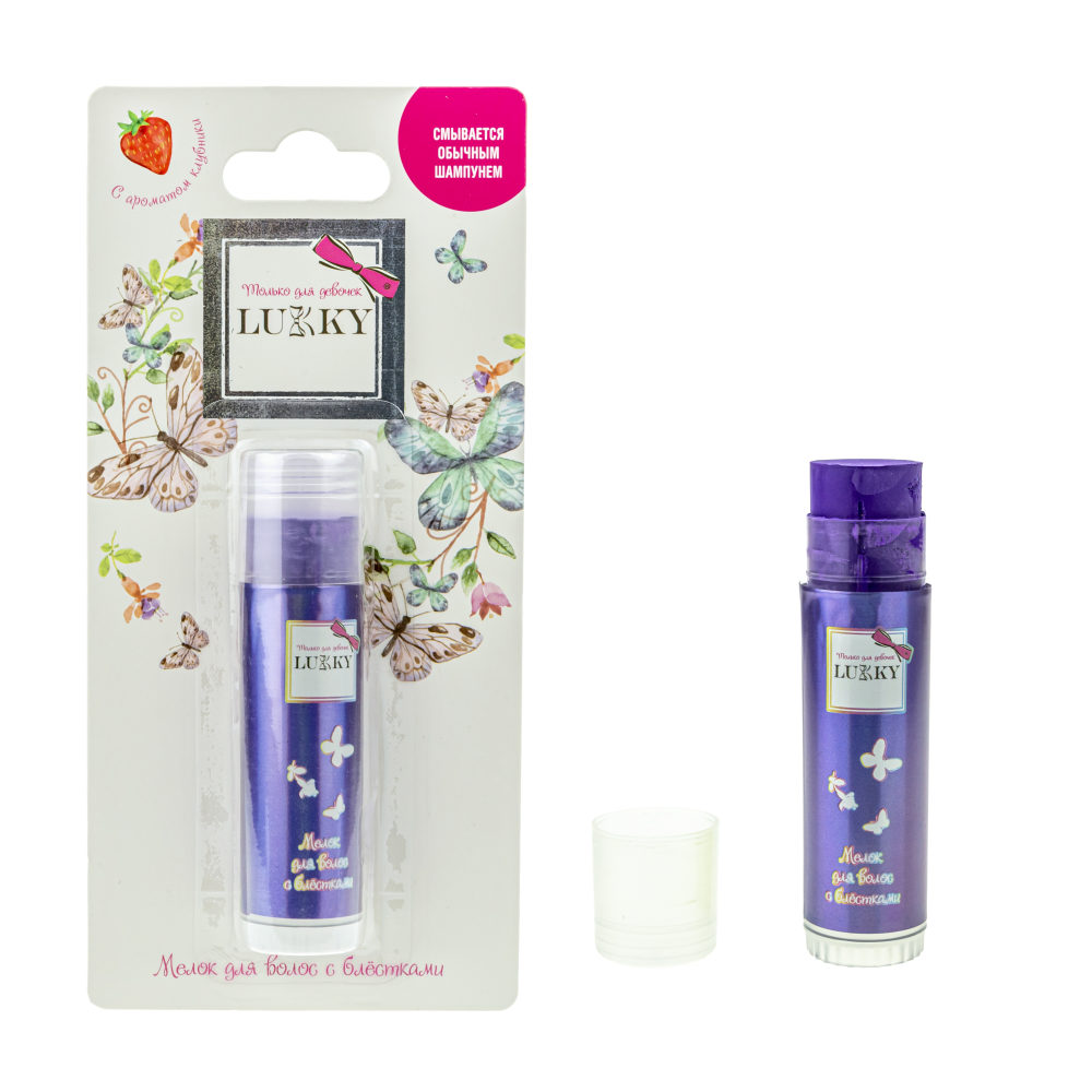 Возврат бракованного Lukky Т18858 цвет.фиолетовый мелок д.волос с блёстками с ароматом клубники,10 г,блистер