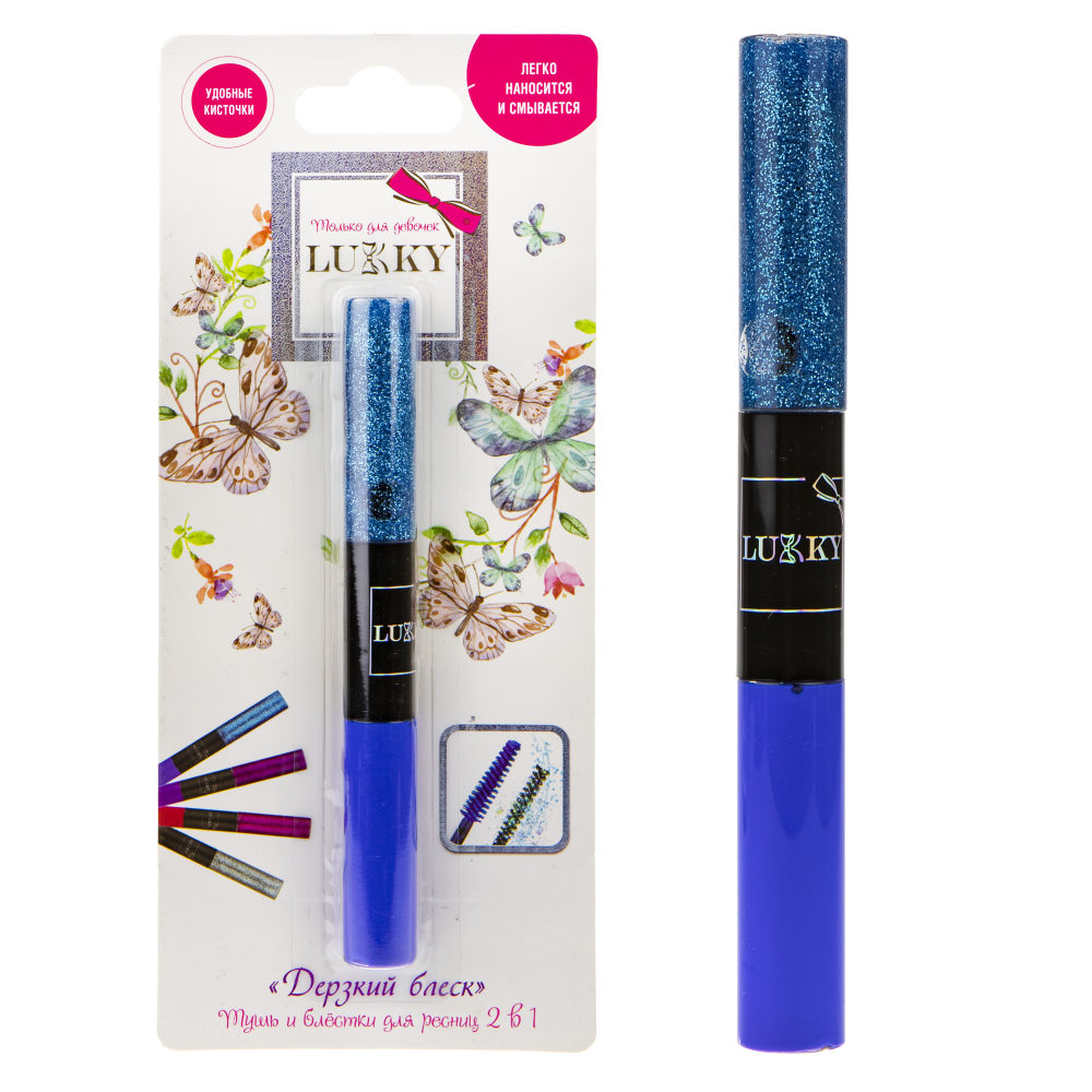 Возврат Lukky Т18921 "Дерзкий блеск" тушь и блёстки д.ресниц 2-в-1, цвет: синий с синими блестками, 10 мл,бл надлежащего качества