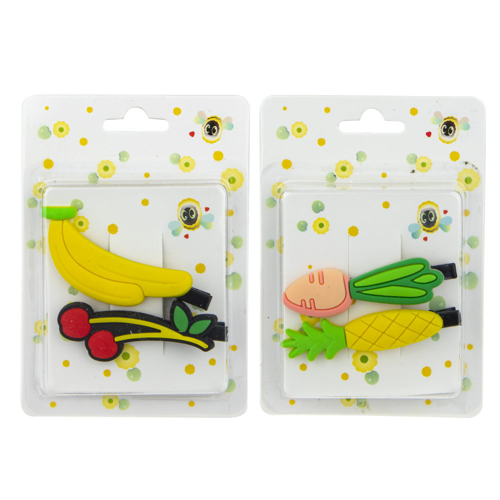 Набор 2 заколочки , в асс-те 2 вида, "Редька и Ананас", "Банан и Вишня", блистер