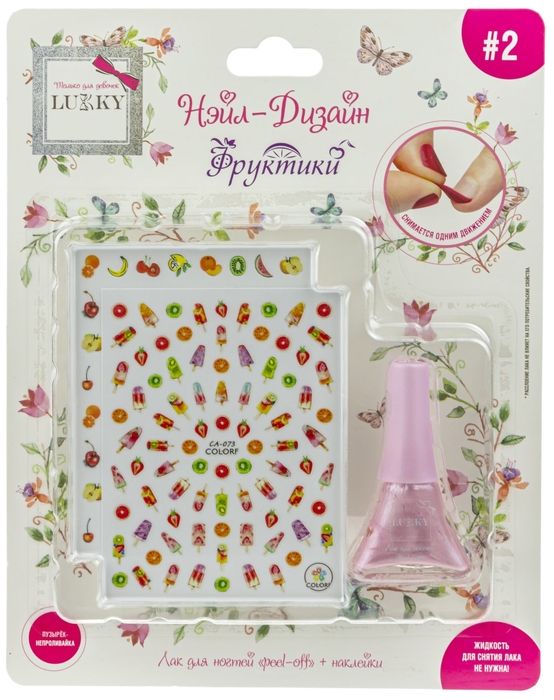 Возврат Lukky Т19480 "Нэйл-Дизайн" 2 наб.лак д.ногтей peel-off цвет сиренево-перламутровый металлик+наклейк надлежащего качества