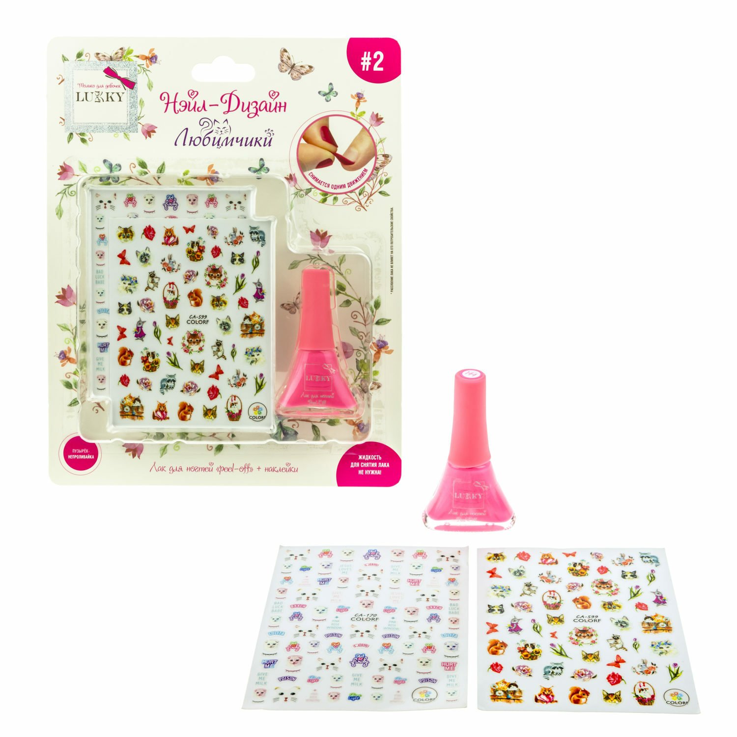 Возврат Lukky Т19485 "Нэйл-Дизайн" 2 наб.лак д.ногтей peel-off цвет коралловый+наклейки "Любимчики" 2 листа надлежащего качества