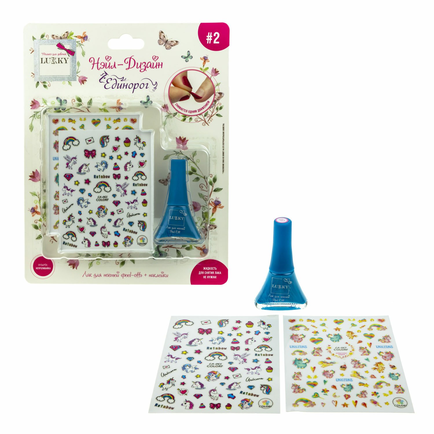 Возврат Lukky Т19495 "Нэйл-Дизайн" 2 наб.лак д.ногтей peel-off цвет голубой+наклейки "Единорог" 2 листа,бли надлежащего качества