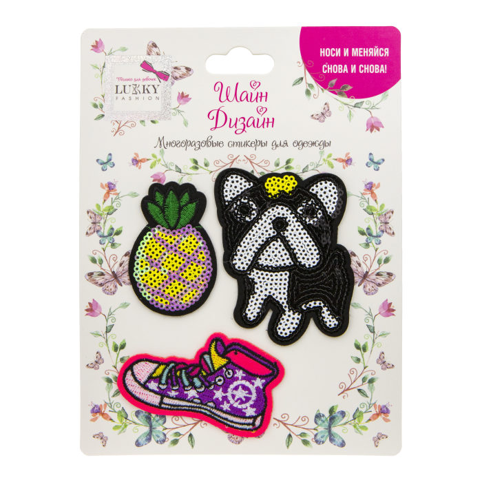 Возврат Lukky Т19710 Fashion Шайн Дизайн, многоразовые стикеры для одежды, 3 шт (ананас, мопс, кед) надлежащего качества