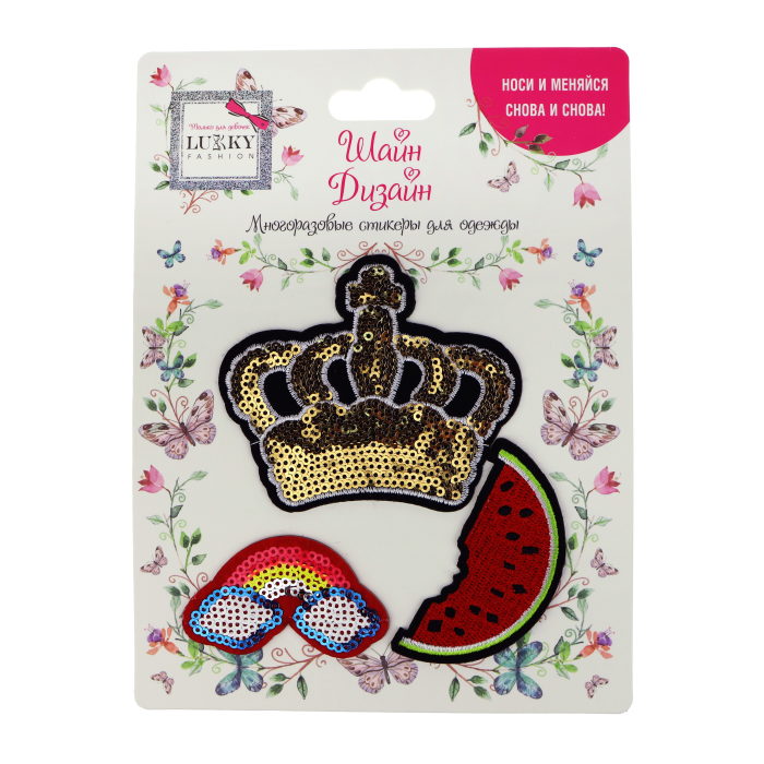 Возврат Lukky Т19712 Fashion Шайн Дизайн, многоразовые стикеры для одежды, 3 шт (корона, радуга, арбуз) надлежащего качества