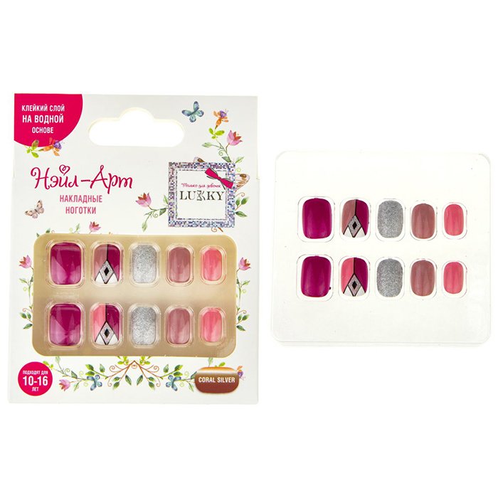 Возврат Lukky Т20808 Нэйл-Арт наб. #10 Coral Silver 10 наклад.ногтей на клеевой основе,10-16 лет,кор. надлежащего качества