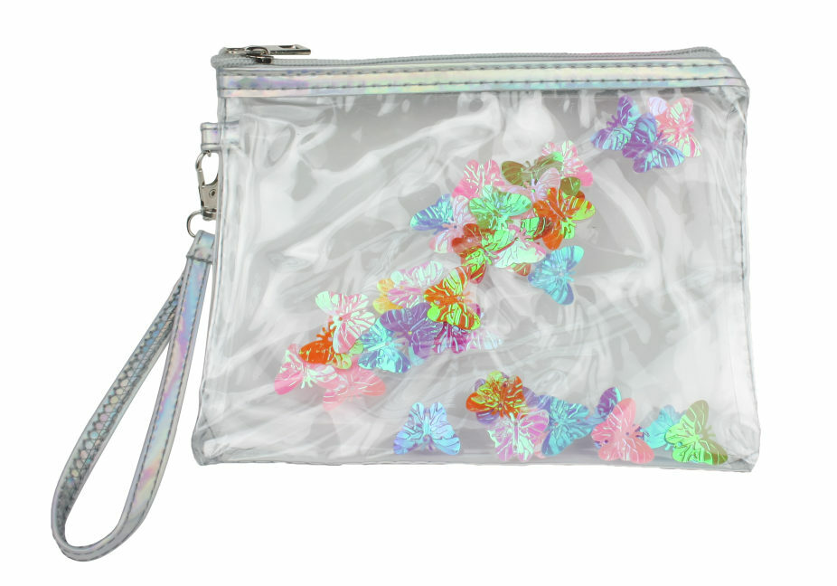 Возврат бракованного Т16304 Lukky Косметичка на молнии с пайетками-бабочками, 19х15 см,пакет,бирка (10013160/130220/00690