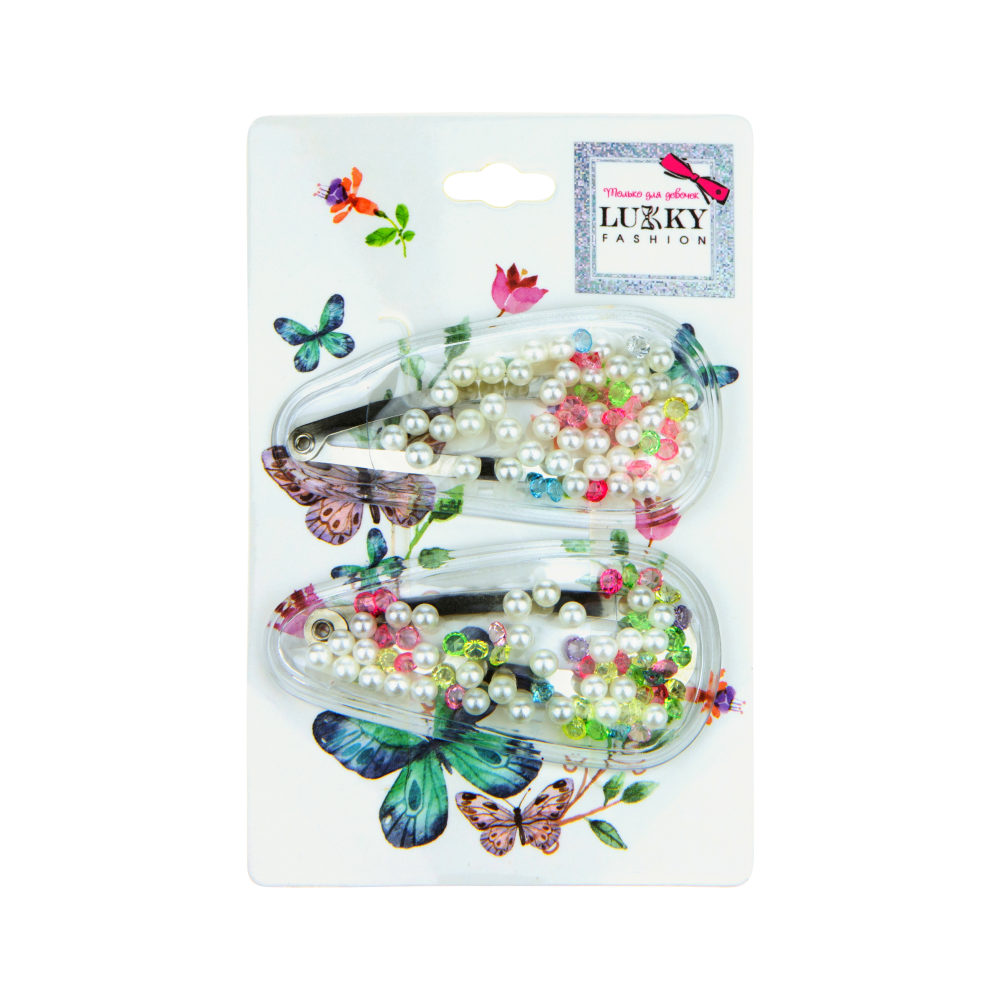 Возврат бракованного Т18431 Lukky Fashion набор заколок для волос клик-клак, насыпные (бусины, кристалы), 2 шт в наборе (