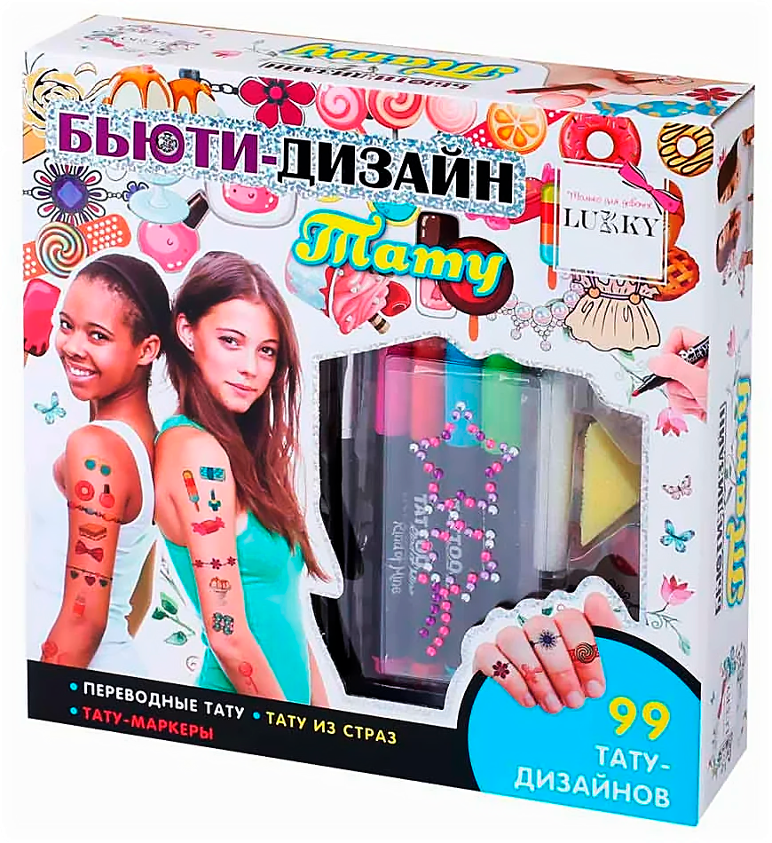 Как обменять Т20242 Lukky Бьюти-Дизайн наб."Тату" с тату-маркерами,картинками для тату,блестками,стразами,спонжем?
