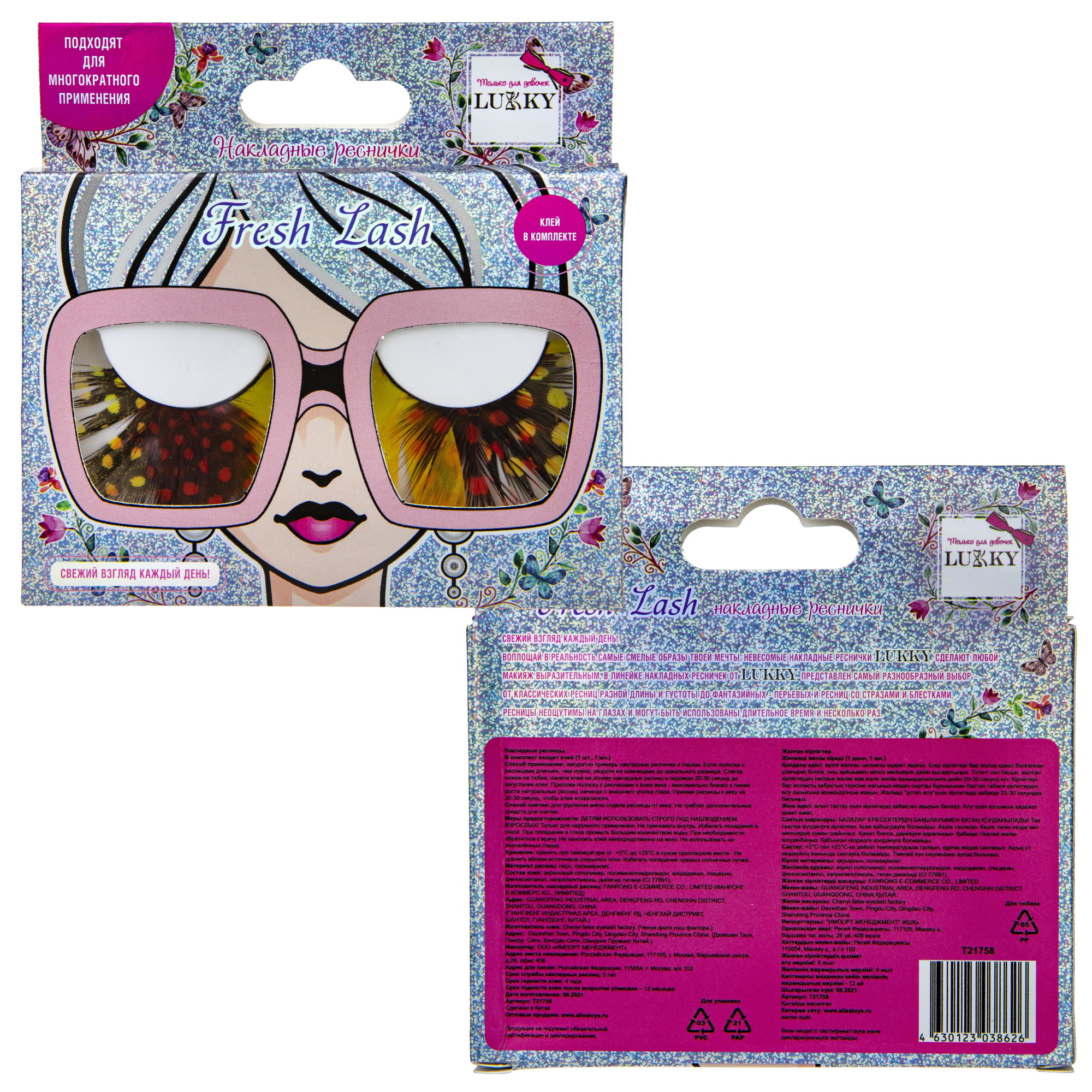 Возврат бракованного Т21758 LUKKY Fresh Lash, реснички накладные перьевые мультиколор, клей в комплекте, кор. (10317120