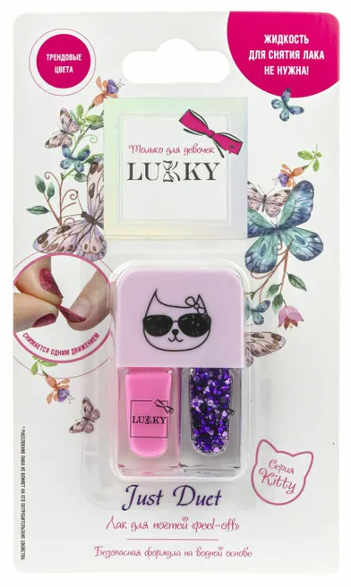 Возврат Т21925 Lukky Just Duet двойные лаки для ногтей, кол-я Kitty, светло розово-сиреневый и фиалковый пер надлежащего качества