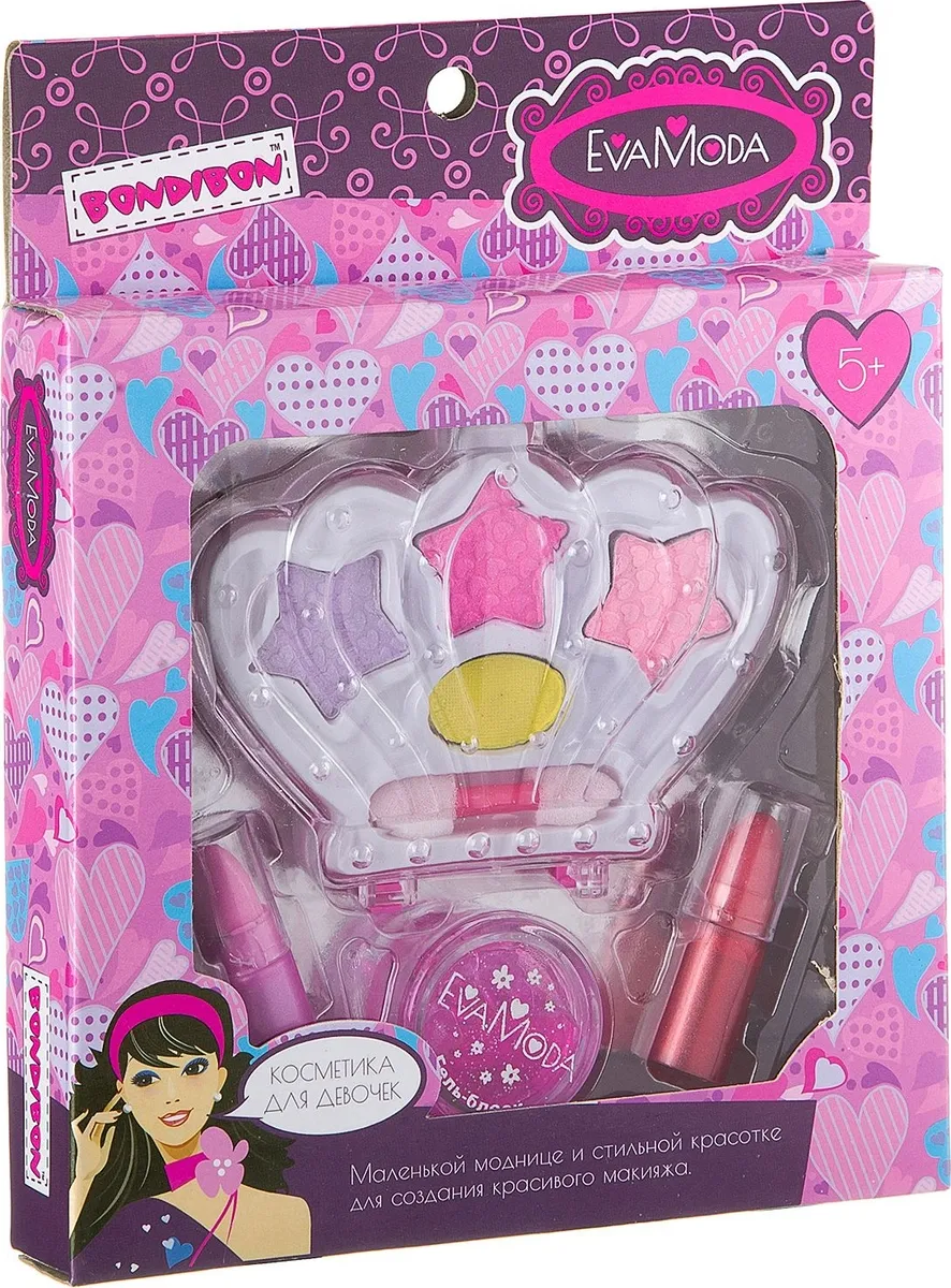 Возврат ВВ2260 Набор детской декор. косметики Bondibon Eva Moda, BOX 18*14*2,5 см; корона с тенями для век 4 надлежащего качества