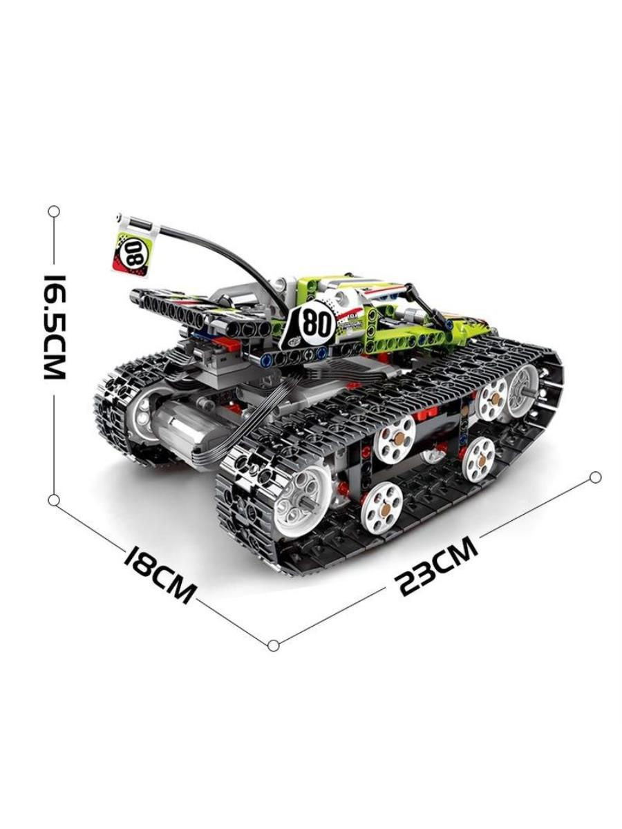 Скоростной вездеход станет настоящим подарком для фанатов гонок. Обладая мощным электромотором и гусеничным приводом с высокой проходимостью и маневренностью, он отлично вписывается в крутые повороты, ловко объезжает препятствия. Его гусеницы с лёгкостью преодолевает преграды, собранные из элементов и блоков легосовместимых конструкторов. Может вскарабкаться по лестнице с невысокими ступеньками, или продемонстрировать всем головокружительные пируэты и резкие развороты при движении вперёд или задним ходом. Этот конструктор полностью совместим с конструкторами других марок, таких, как Sluban, Ausini, Bela, LEGO и Brick и др. Детали хорошо скрепляются между собой и выполнены из гипоаллергенного пластика. Конструктор упакован в яркую коробку, детали внутри запаяны в пакеты, инструкция по сборке также в комплекте. Время зарядки: 60-70 минут. Дальность работы пульта управления: до 20м. Пульт д/у 2,4G питание: 2 батареи ААА (в комплект не входят).
