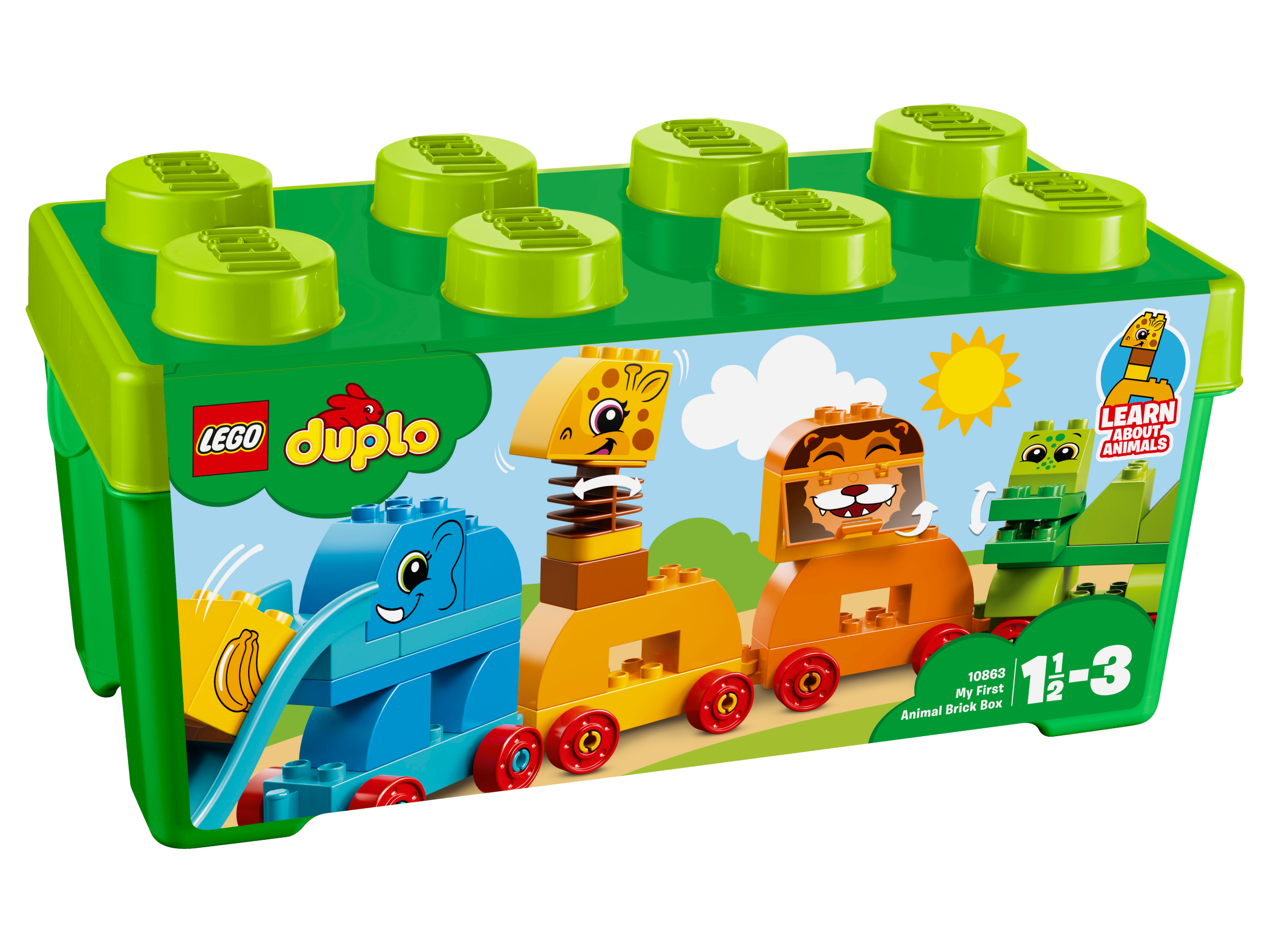 Помогите малышу рассортировать кубики по цветам и расскажите о каждом животном, пока будете его собирать: о слоне с горкой вместо туловища, о щёлкающем челюстями крокодиле, об открывающем пасть льве, об изгибающем шею жирафе и о белой птичке. Яркие и крупные кубики LEGO® DUPLO® специально сконструированы так, чтобы они были безопасны и удобны для малышей.