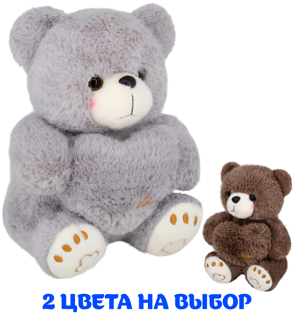 Мишка с сердцем 35 см FG250327127C-2 цвет в ассорт. – мягкая игрушка в форме милого плюшевого мишки, держащего текстильное сердце, которая станет верным спутником для ребенка в играх или для уютного декора.