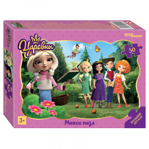 Пазл 30 МАКСИ Контурный «Царевны» (артикул 64010) от бренда Step Puzzle — детский пазл из 30 крупных элементов размером примерно 5 х 4,5 см. Размер собранного изображения — 27 х 18 см. Пазл изготовлен из плотного картона с яркой четкой печатью. Удобный контур элементов специально разработан для детских рук.