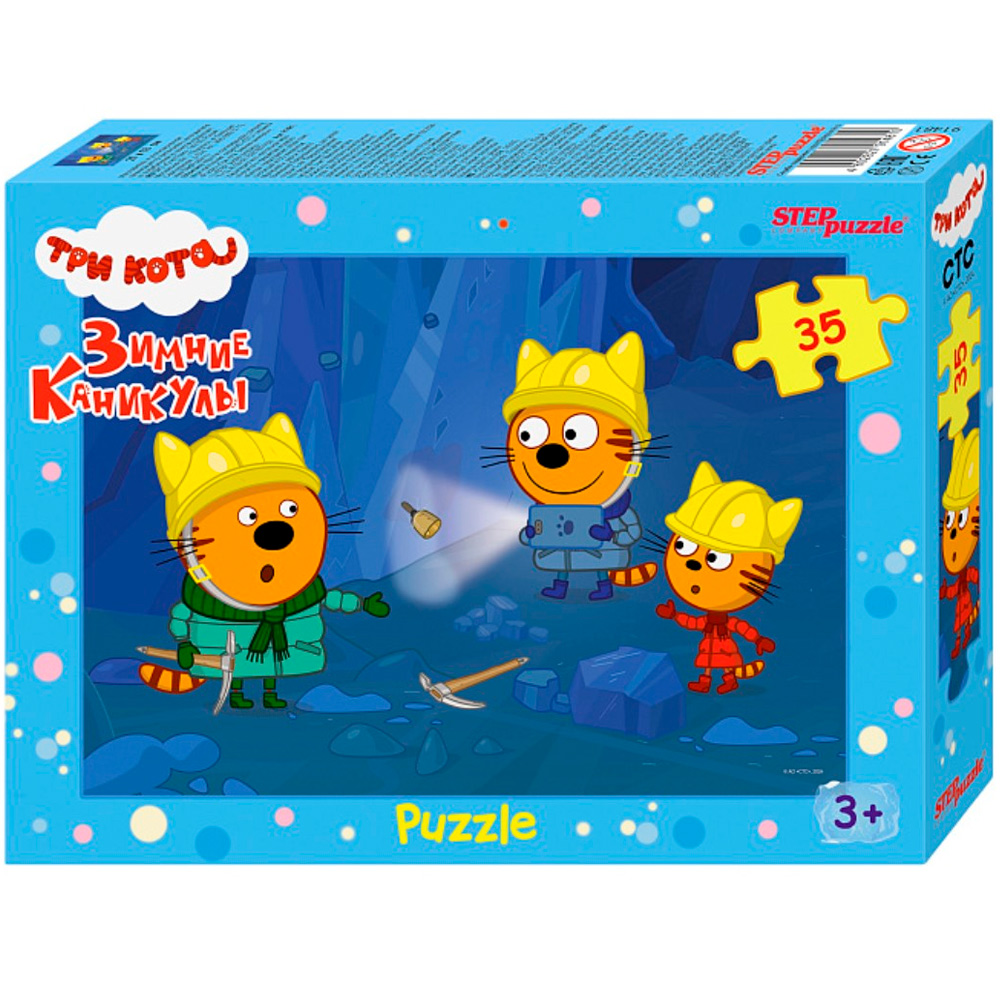 Пазл 35 элементов «Три кота. Зимние каникулы» (артикул 91481) от бренда Step Puzzle — детский пазл с деталями размером примерно 4,6 × 4,5 см. Размер собранного изображения составляет 27 × 18 см. Пазл выполнен из качественного картона с ярким изображением героев мультфильма «Три кота» в зимней тематике.