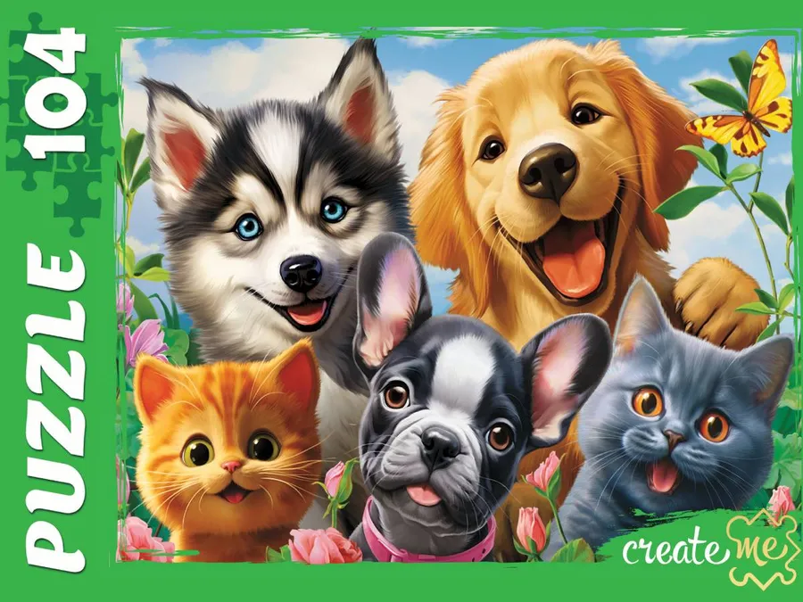 Ф104-6476 ПАЗЛЫ 104 элемента. СЕЛФИ ЧЕТВЕРОНОГИХ ДРУЗЕЙ (арт. Ф104-6476) — это детский пазл для сюжетно-ролевых игр.