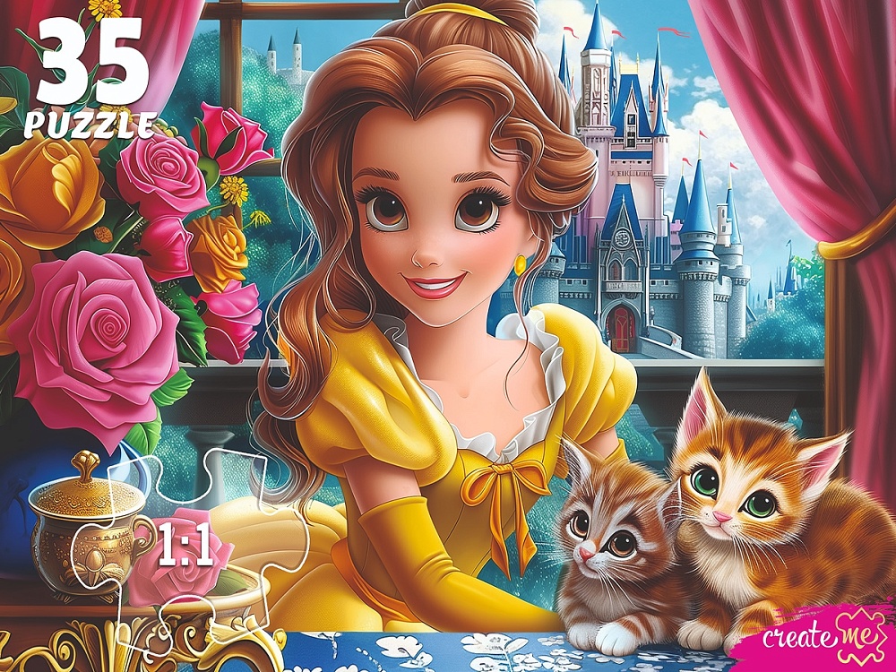 Набор состоит из 35 элементов с изображением принцессы и котят, собирается в яркую картинку. Подходит для спокойных развивающих занятий дома.