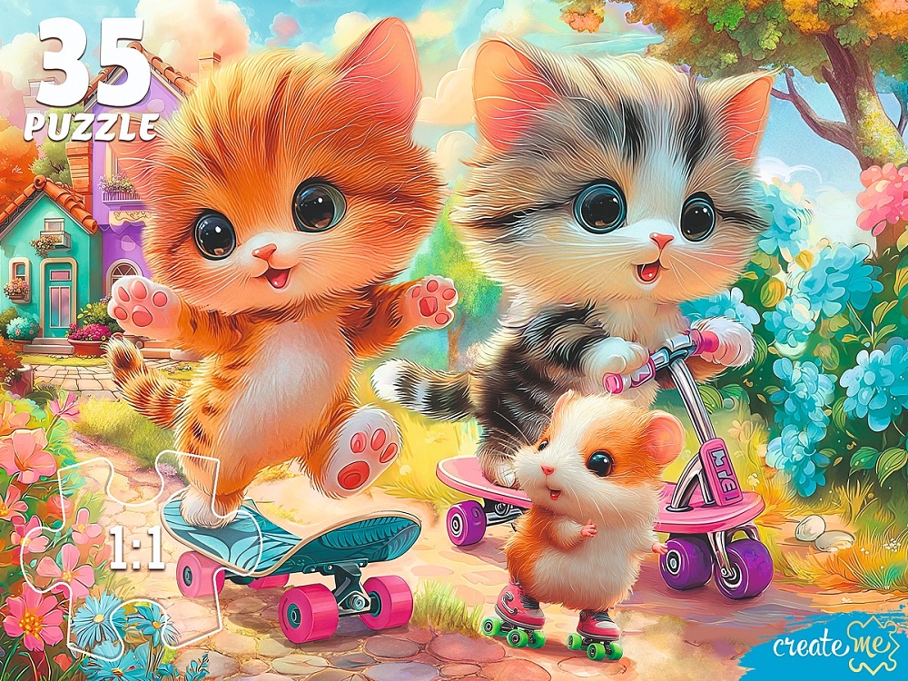 Пазл состоит из 35 крупных элементов, собирается в яркую картинку со спортивными котятами. Легко собирается на столе или полу.