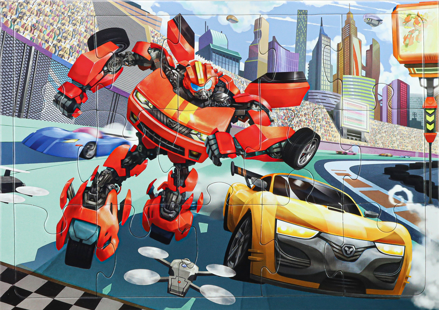 Пазл-рамка из 15 элементов "ГОНКИ ТРАНСФОРМЕРОВ" придется по душе всем малышам! Популярная занимательная игра, которая развивает мелкую моторику рук, память, внимание посредством собирания яркой и красочной картинки, состоящей из мелких деталей. Огромное разнообразие изображений никого не оставит равнодушным!
