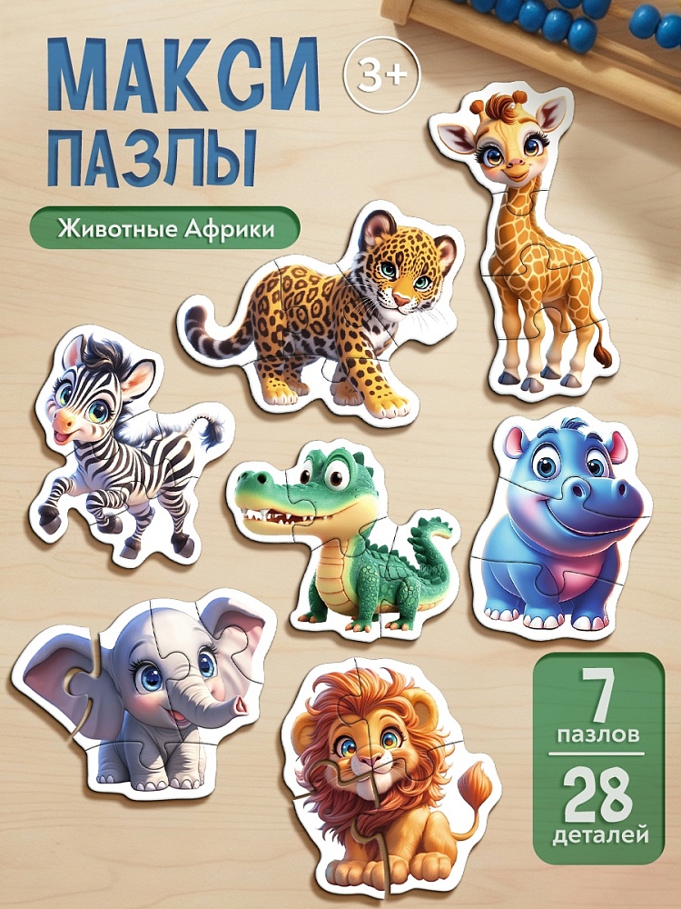 Возврат бракованного П28-8382 МАКСИ-ПАЗЛЫ. ЖИВОТНЫЕ АФРИКИ (7 пазлов, 28 деталей) (новая коробка) (арт.П28-8382)