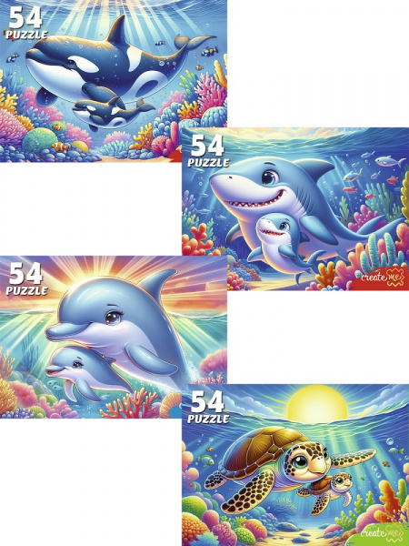 Пазл состоит из 54 крупных элементов, собирается в яркую картинку с рыбками и морскими жителями. Ассортимент, кратно 32 шт.