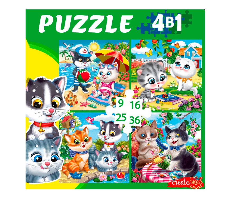 Возврат П-8387 Пазл 4 в 1 9,16, 25, 36 эл. Забавные котики №6 П-8387 надлежащего качества
