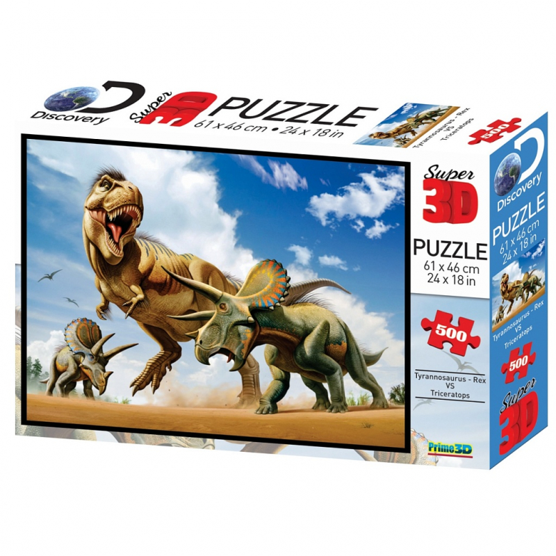 Линзовидный super 3D пазл «Тираннозавр против трицератопса» с эффектом трёхмерного объёмного изображения обязательно понравится всем любителям собирать картинки из множества фрагментов.