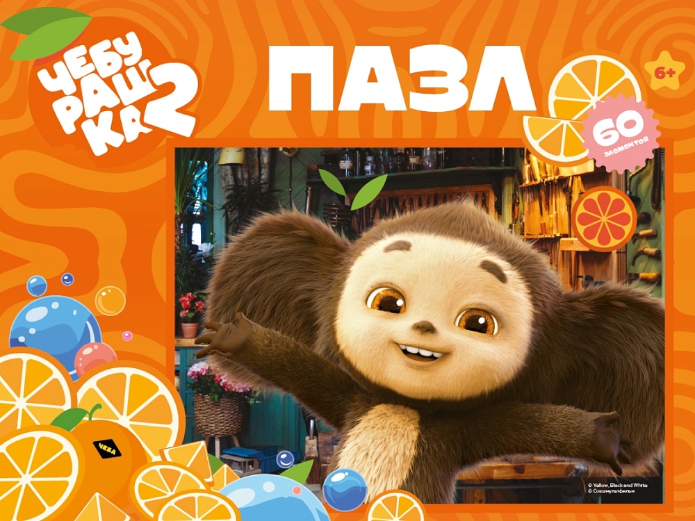 Набор состоит из 60 элементов с изображением Чебурашки, собирается в яркую картинку размером 33×24 см. Легкая сборка без клея, детали разной формы соединяются прочно. Упаковка — коробка.