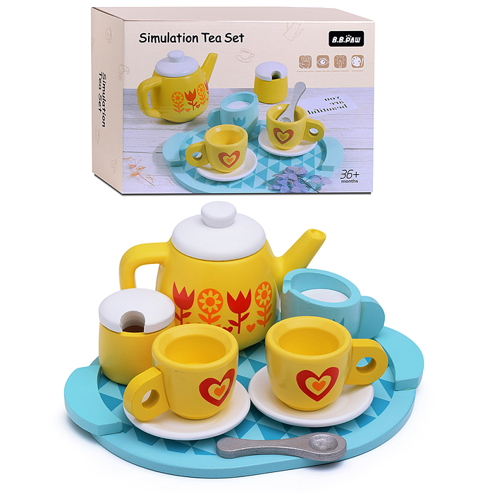 Этот набор включает 7 предметов, выполненных из дерева: поднос размером 24 х 18 см, чайник с подставкой (13,5 х 8 х 7 см), чашку (7,5 х 5,5 см) с блюдцем (диаметр 8 см) и ложкой, а также кувшин. Компактные размеры предметов идеально подходят для детских рук, позволяя ребёнку организовать чаепитие для себя и друзей или игрушек. Дерево как материал обеспечивает долговечность и приятные тактильные ощущения. Набор идеально подходит для сюжетно-ролевых игр, помогая ребёнку развивать воображение и бытовые навыки.