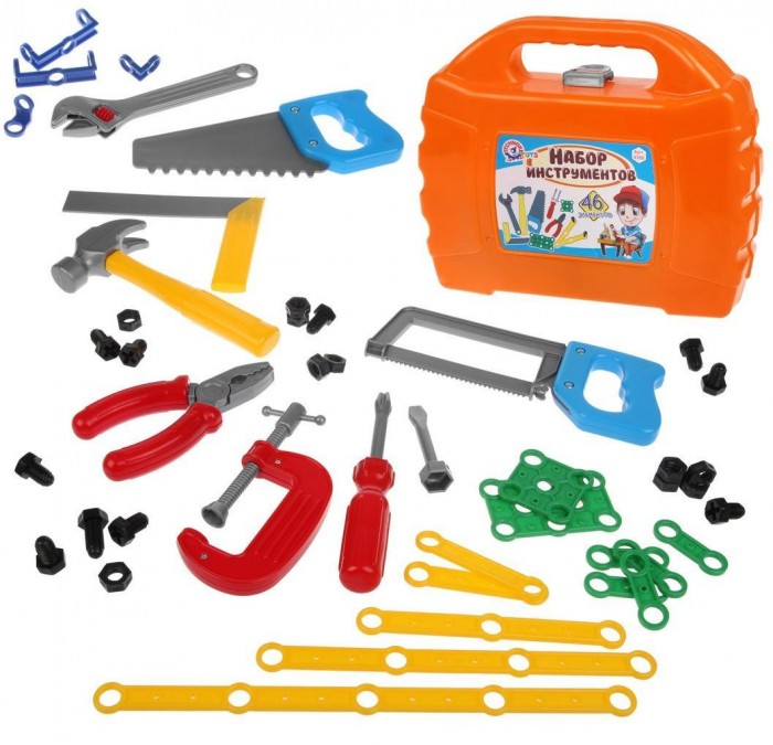 Этот чудесный набор с элементами конструктора (пластиковые планки, уголки, пластины, болты и гайки) позволит малышу освоить принципы работы резьбовых соединений, что безусловно будет востребовано во взрослой жизни.