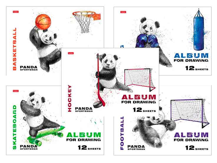 Возврат бракованного Альбом для рисования ХАТБЕР А4 12 листов "ПАНДА-СПОРТСМЕН", скоба (1/9/90) (12А4В) (067274)