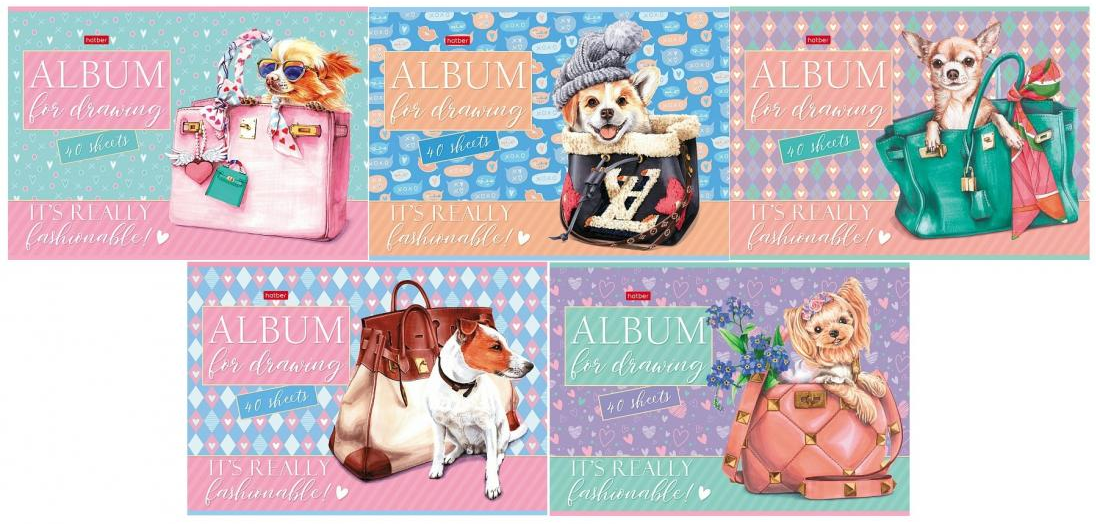 Возврат бракованного Альбом для рисования ХАТБЕР А4 40 л "FASHION DOGS",скоба, 5 диз (074745) (7/35)