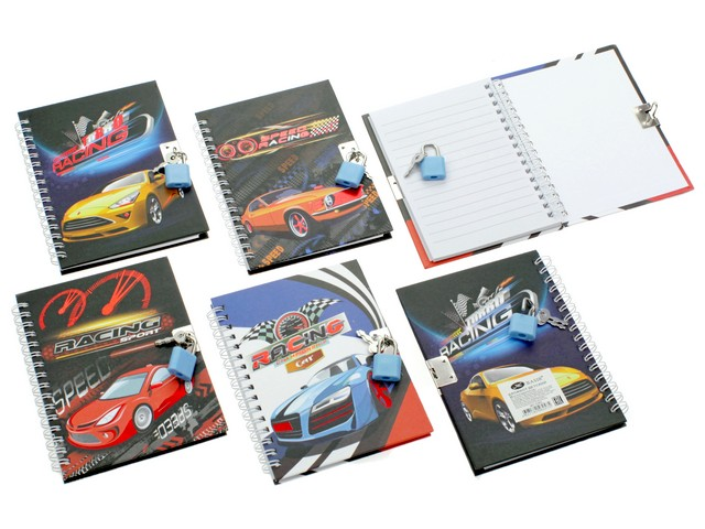 Блокнот детский+замочек: яркая, цветная обложка 7-БЦ, двойная евроспираль, рисунок-машины с гололграфическим тиснением /ассорти/, блок-линейка, 48 листов, 15*11 см.