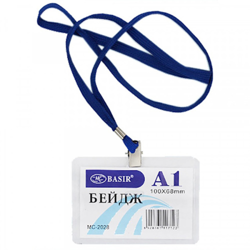 - прозрачный пластиковый бейдж с нейлоновым шнурком и металлической прищепкой