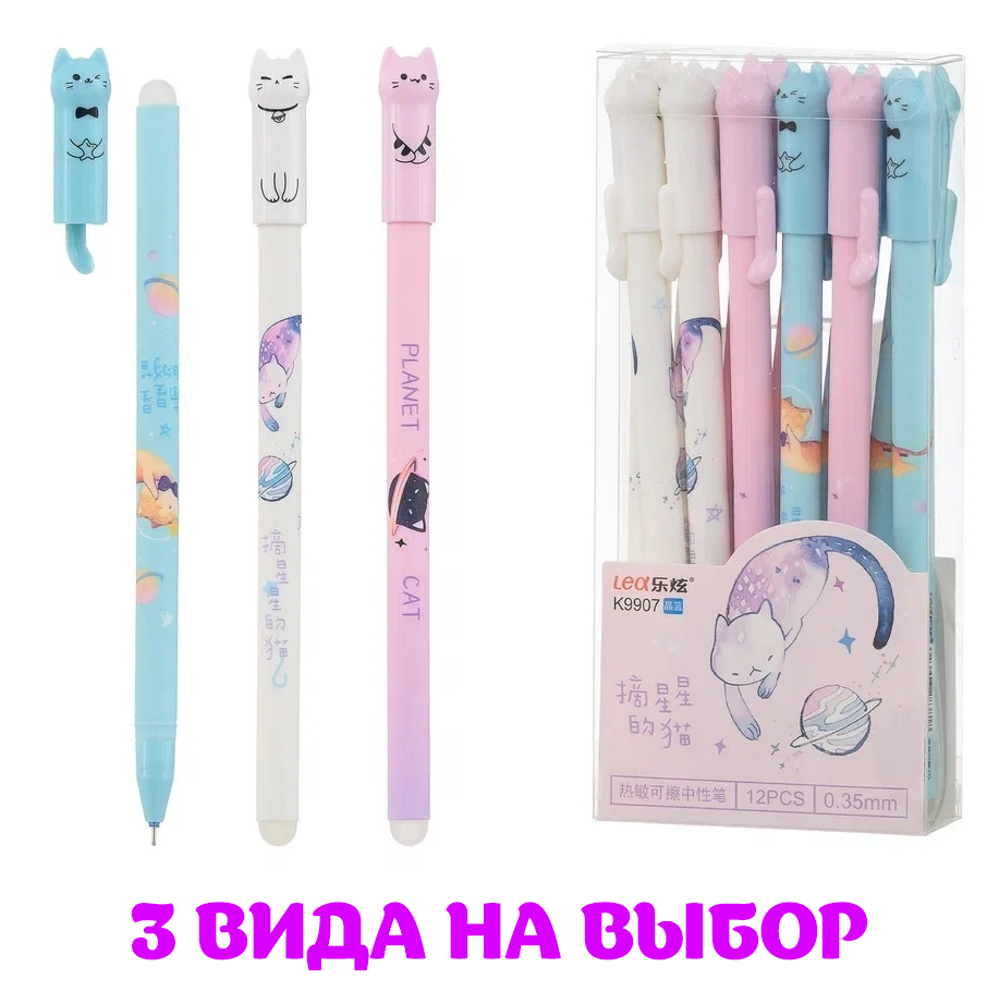 Ручка гелевая пиши-стирай МС-K9907 "ПЛАНЕТА КОШЕК", 0,5 мм, синяя. Удобна для детей, стираемые чернила, стильный дизайн.