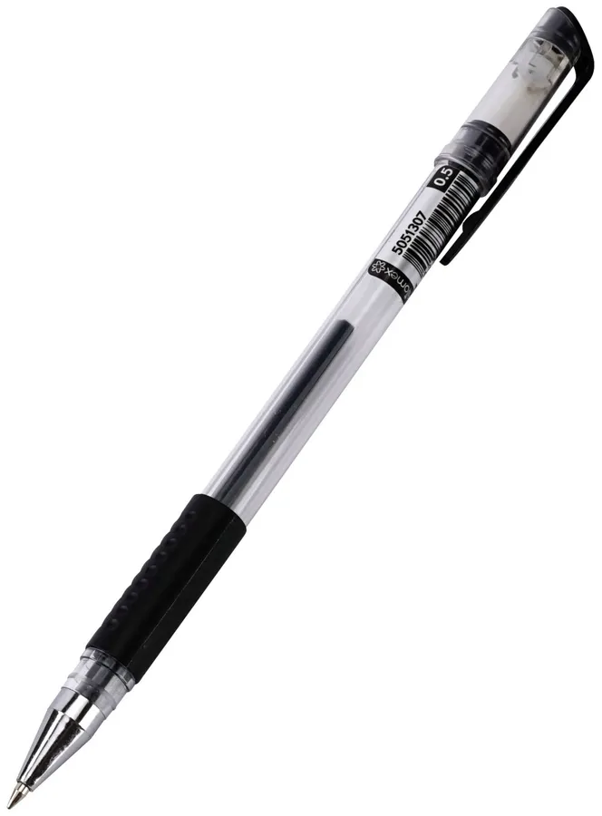 Ручка гелевая "Attomex" d=0,5 мм, с прозрачным корпусом и резиновым держателем, индивидуальная маркировка, черная