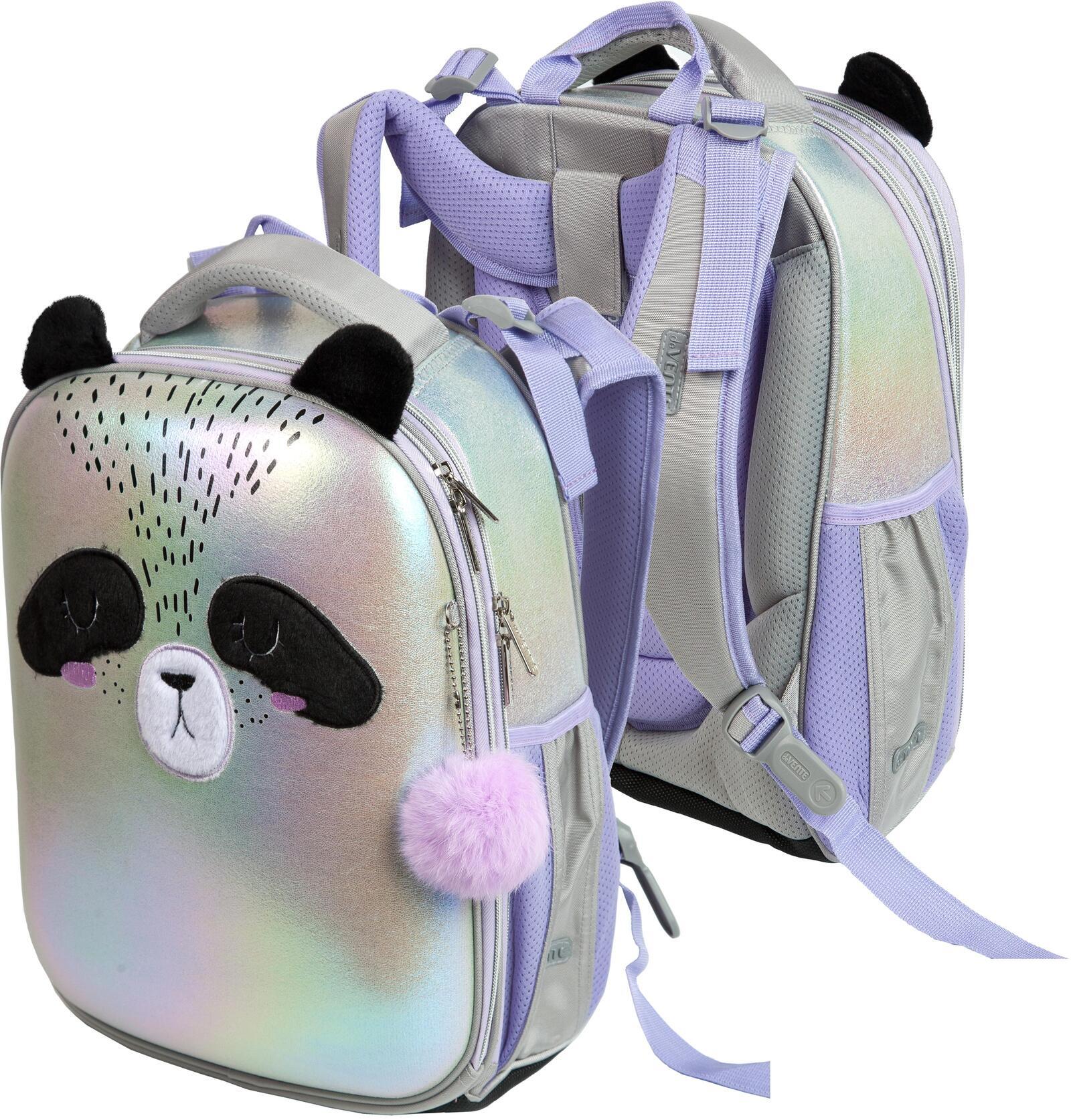 Рюкзак "deVENTE. Choice. Lucky Panda" школьный жесткий , 1 отделение на молнии с разделителями для учебников, 1 отделение с органайзером, 2 боковых кармана сеткой на резинке, эргономичная формоустойчивая вентилируемая спинка и мягкие S-образные регулируемые по росту ребенка лямки, дно из фактурной резины с ножками, ручка для переноски и петля для повеса, светоотражающие элементы, в комплекте с брелоком. Размер 38x28x16 см (17 л) , вес 1000 г