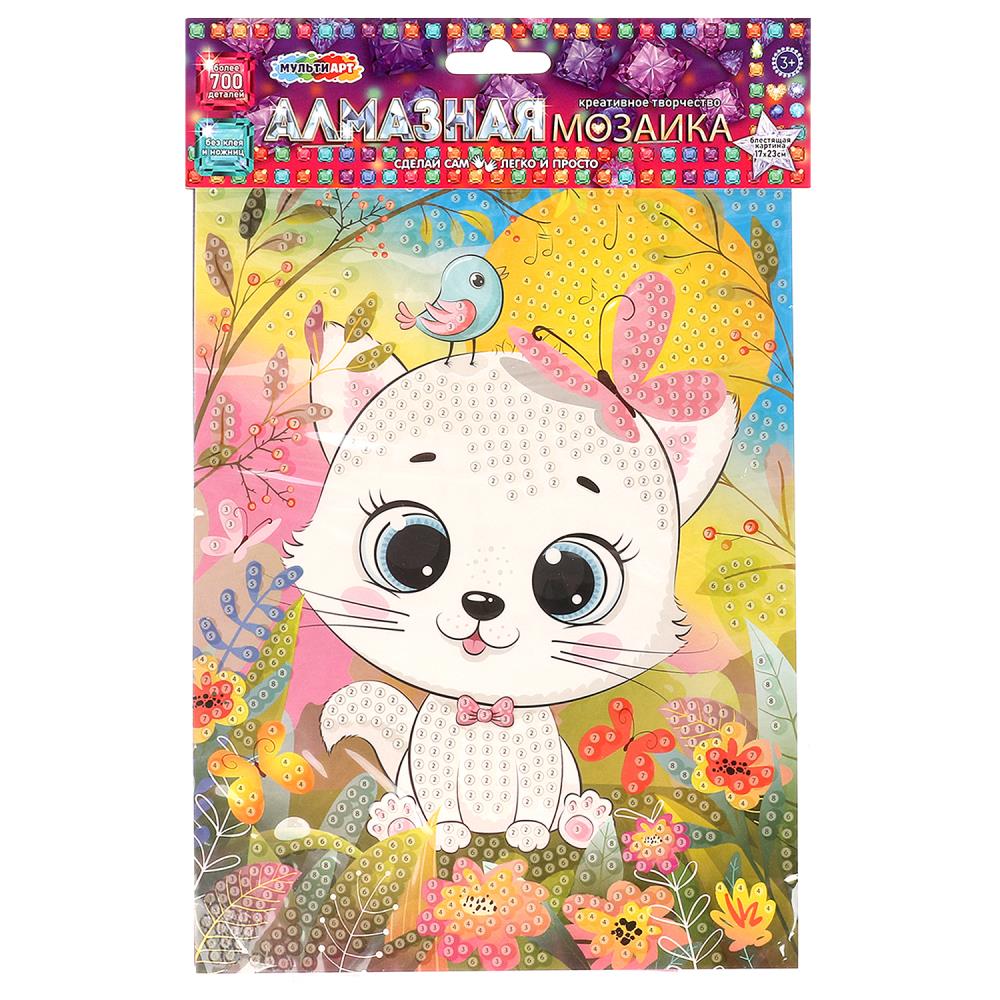 Набор для детского творчества – алмазная мозаика-открытка «Котик» ТМ «Мульти Арт» - отличный подарок для ребёнка, который будет способствовать развитию его творческих способностей: