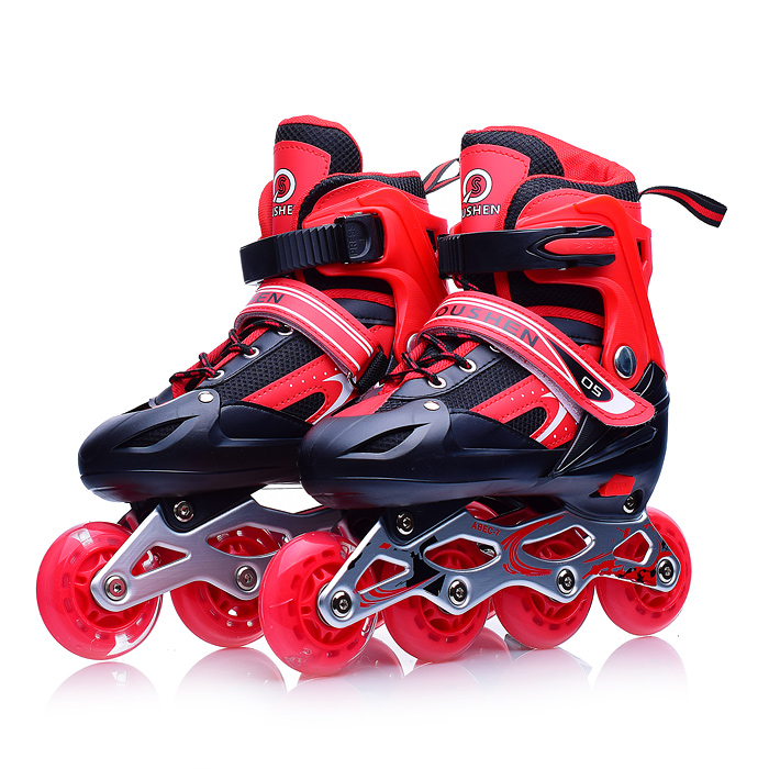 Возврат U001746Y Роликовые коньки раздвижные, PU колёса со светом, размер M, красные, в сумке надлежащего качества